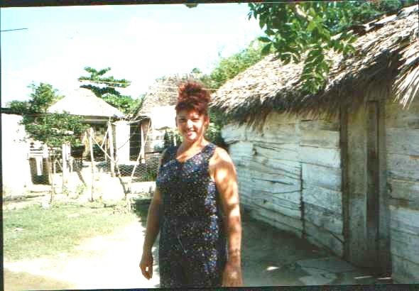 We staan op om 7 uur. Het is stralend weer. We gaan snel naar het restaurant voor het ontbijt.Na het eten nog even langs het strand. Om 9uur gaan we met de gehuurde auto naar een kennis, Neida,ze woont in Camelote. Drie jaar geleden hebben we leren kennen,sindsdien schrijven we elkaar vele brieven. In mijn laatste brief heb ik haar geschreven dat we weer in Santa Lucia kwamen. De eerste dag in ons hotel , belde ze mij al op.We spraken af dat mijn man en ik vandaag naar haar ,,casa'' zouden komen voor een bezoek. Zodoende gaan we op weg naar Camelote. Na zo'n 20km te hebben gereden komen we op een kruizing. Geen wegwijzer. We rijden door. Er loopt een Cubaan langs de weg. We vragen ,,Camelote'' ?. Hij wijst naar links. Oké. 50m verder is een afslag naar links. Na nog een paar keer vragen komen we bij Camelote. O, wat zijn de wegen slecht, grote gaten, soms schuurt de auto met de onderkant over het wegdek.. We komen hier ook geen auto's tegen, alleen maar paard en wagens. Hier en daar ,,woningen''.Dan zien we een hele groep mensen voor een huisje staan. We vragen ons al af of daar iets gebeurd is. Maar dan zien we Neida op ons af komen. Ze zwaait, Wat blijkt nu..... We worden opgewacht door de hele familie en alle buurt bewoners. Somigen blijven wat op afstand.Ja zo vaak zien ze hier ook geen touristen,en ook al geen auto.